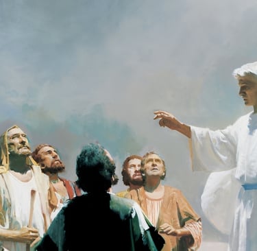Quando Maria Madalena e suas acompanhantes se aproximaram com pesar do Jardim do Sepulcro, dois anjos apareceram a elas e compartilharam a admoestação para todo o cristianismo: